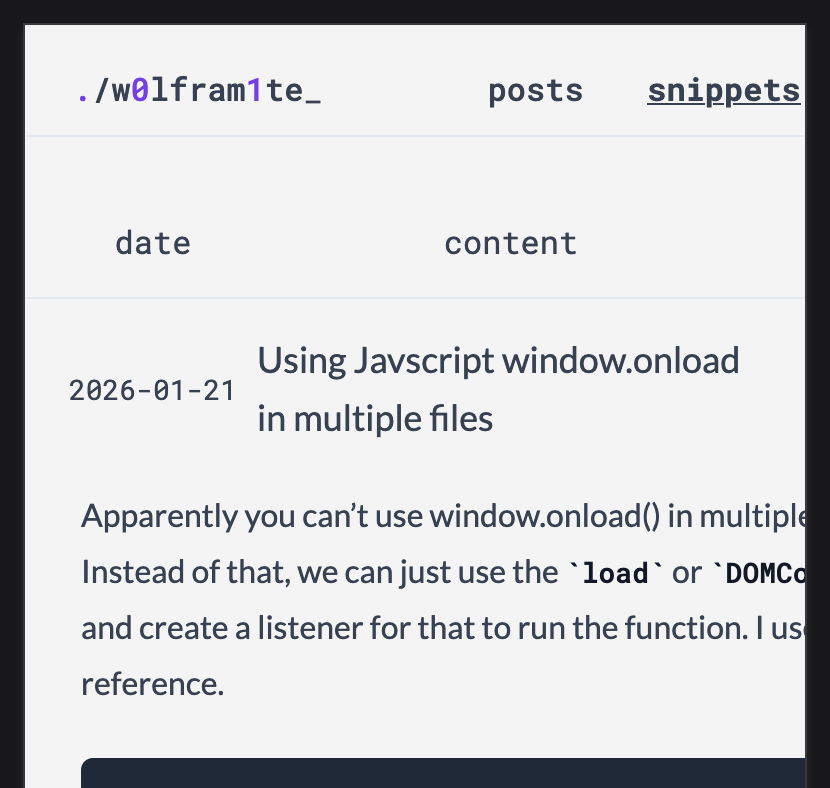 Overall, I am more or less satisfied with the current state of the website with the above fixes applied. In the future I could look into modifying some elements within the @tailwind/typography which would give me a reason to do a deeper-dive of CSS.